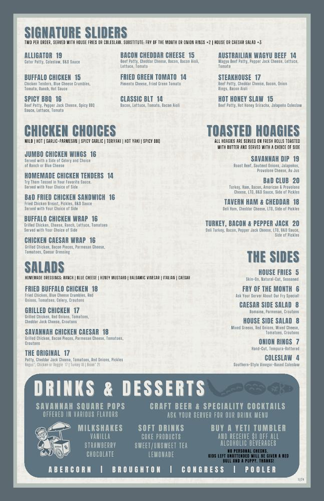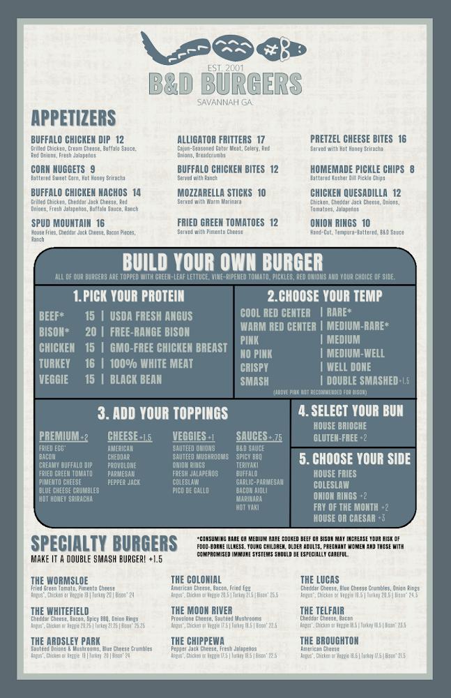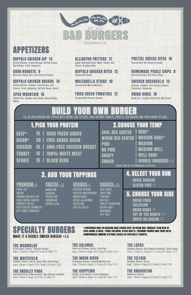 Welcome to B&D Burgers on East Broughton Street, your go-to destination for gourmet burgers in the heart of Savannah! Since 2001, our family-owned restaurant has been delighting locals and visitors alike with a delicious selection of handcrafted burgers, complemented by a wide variety of craft beers. Whether you’re stopping by for a leisurely lunch or a vibrant dinner, you’ll experience quick service and a warm, welcoming atmosphere. Enjoy our outdoor seating, take advantage of happy hour specials, or grab a bite to go. Come taste the B&D difference and discover why we’re a beloved staple in the community!